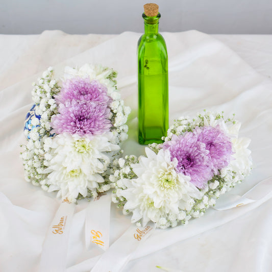 Gajra Pair with White and Purple Chrysanthemums